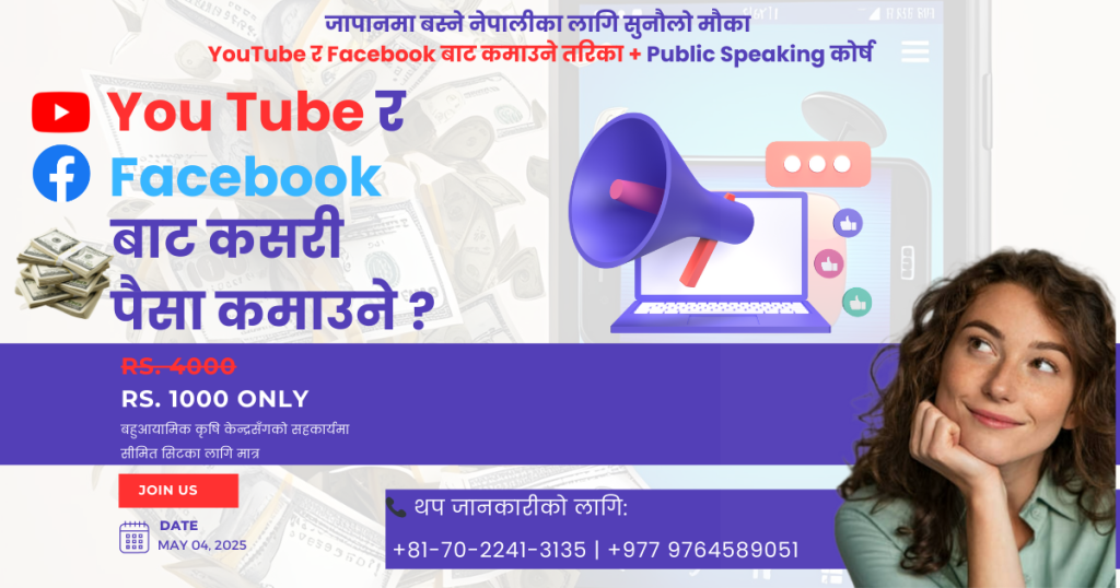 टोकियो, जापान –जापानमा बस्ने नेपाली समुदायका लागि लक्षित गर्दै “डिजिटल कमाई र व्यक्तित्व विकास” विषयमा विशेष अनलाइन तालिम सञ्चालन हुने